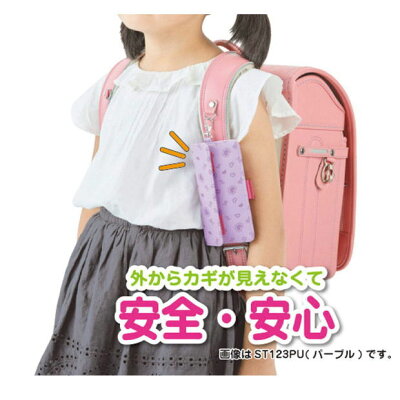 商品名 STAD 安全目隠しキーケース 品番 ST123NB ネイビー/ ST123PU パープル サイズ 奥行2.3cm×幅6.61cm×高さ17.7cm 40g 仕様 チェーン最長80cm 鍵が見えない目隠し型、コイルチェーン付き 横開き、マジックテープ式 【取り付け方法】ランドセルの方紐に、付属のベルトで固定します。